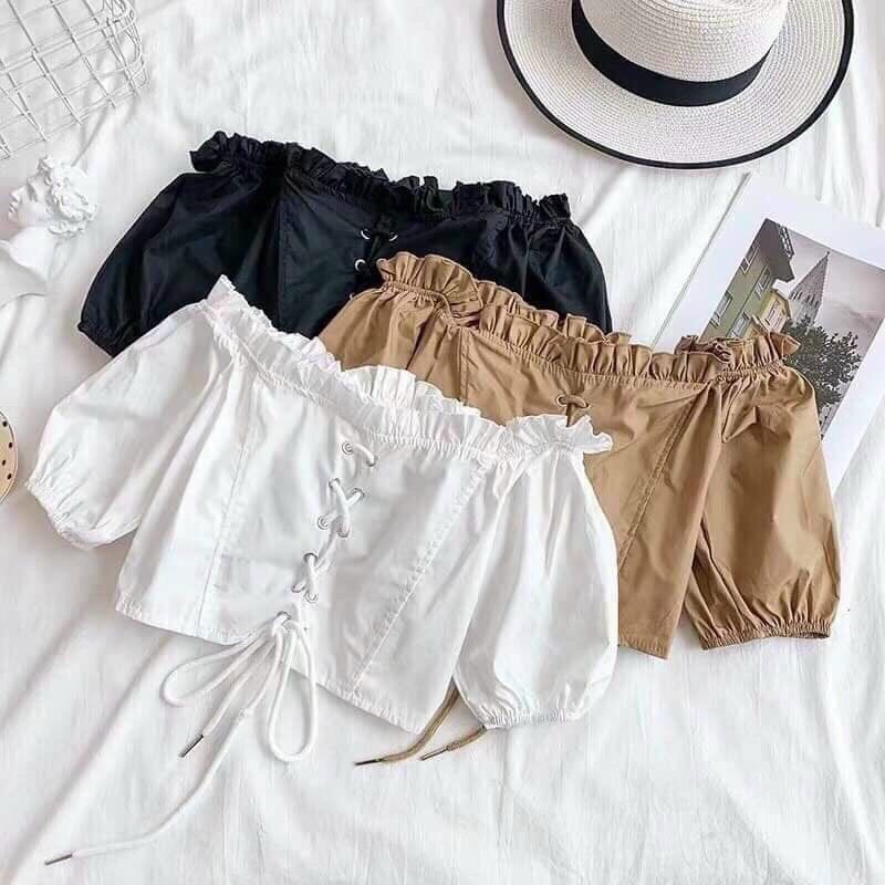 Áo bẹt vai xỏ dây dễ thương