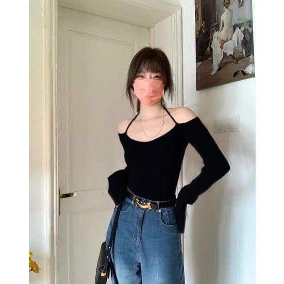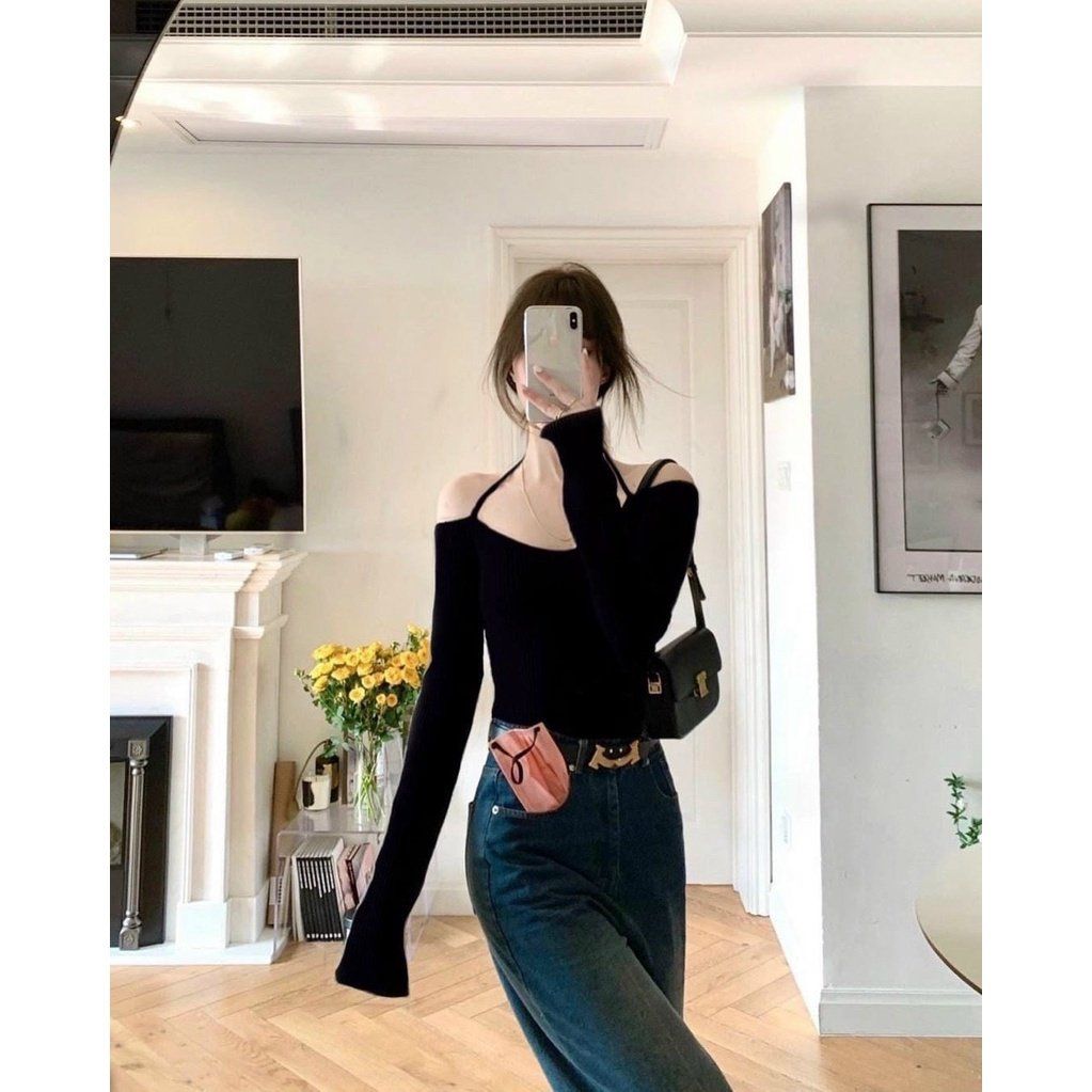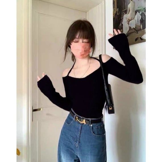 Áo thun ôm tay dài trễ vai
