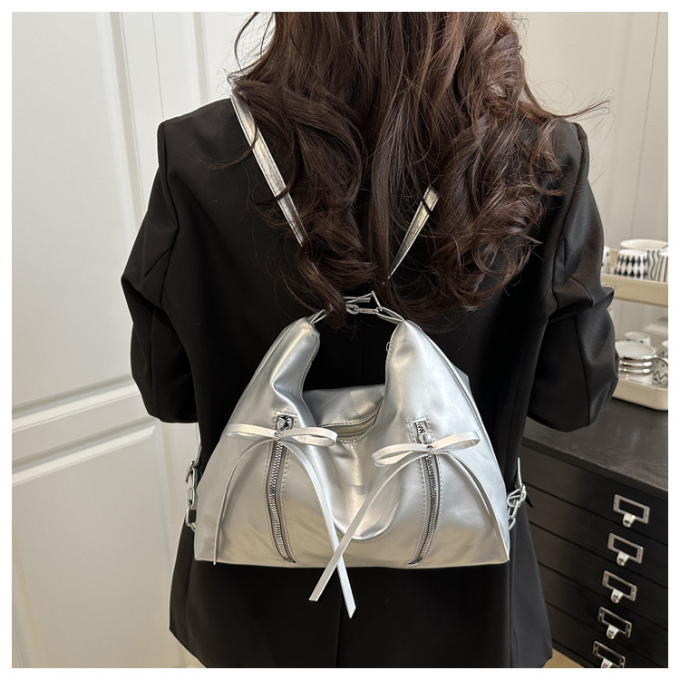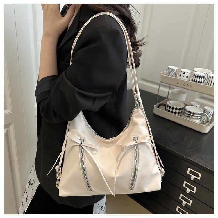 Ba lô Xinh Xinh kiêm túi tole chất da, balo nữ đính nơ mẫu mới giá rẻ, túi đeo vai công sở