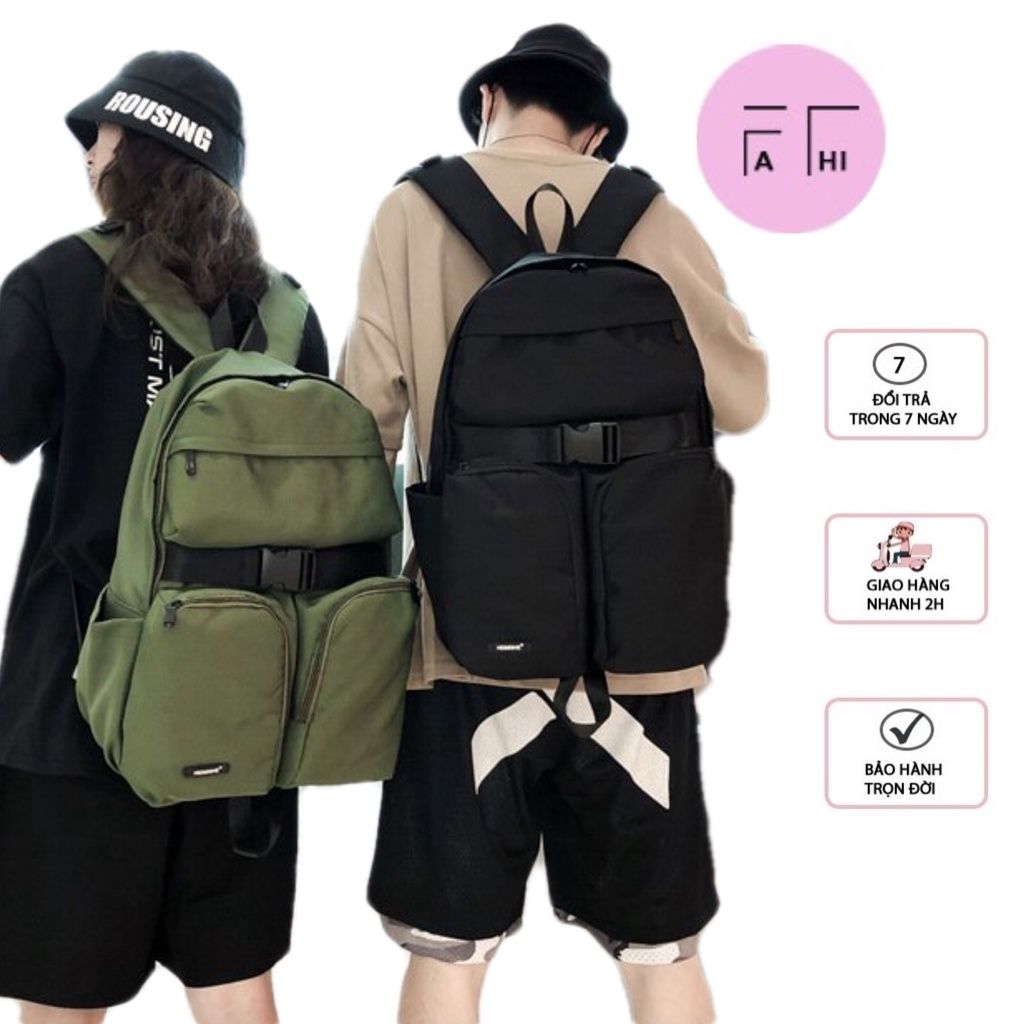 Balo 2 túi cài quai to, đi học, đi chơi, du lịch kiểu dáng unisex nam nữ