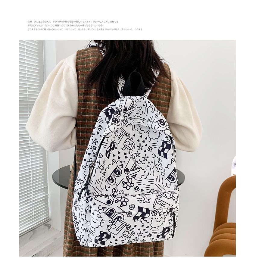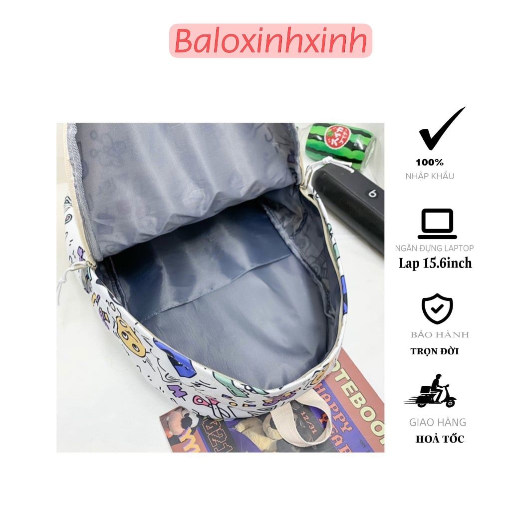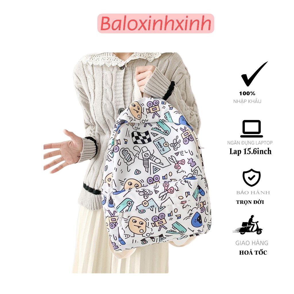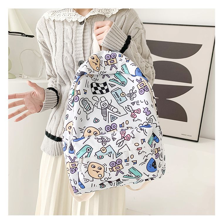 Balo họa tiết nam nữ đi học đi chơi , cặp sách cấp 1, 2, 3, túi sách sinh viên du lịch, kiểu dáng Hàn Quốc cỡ vừa