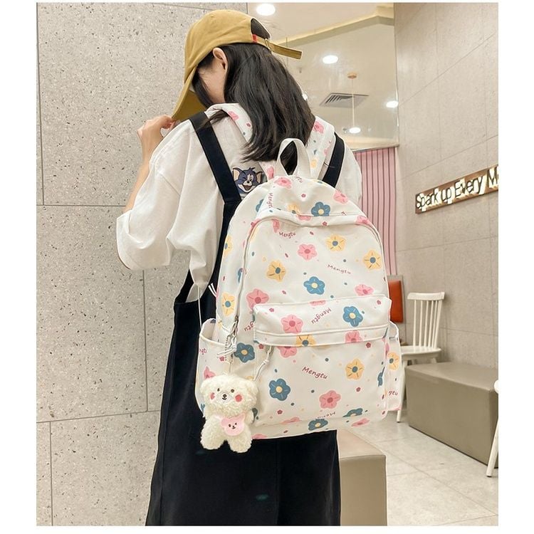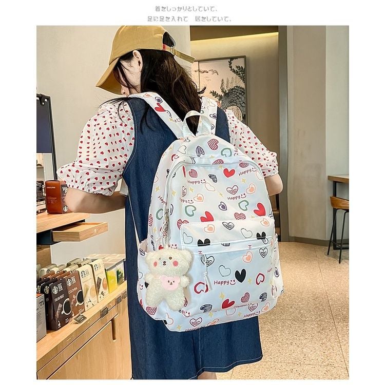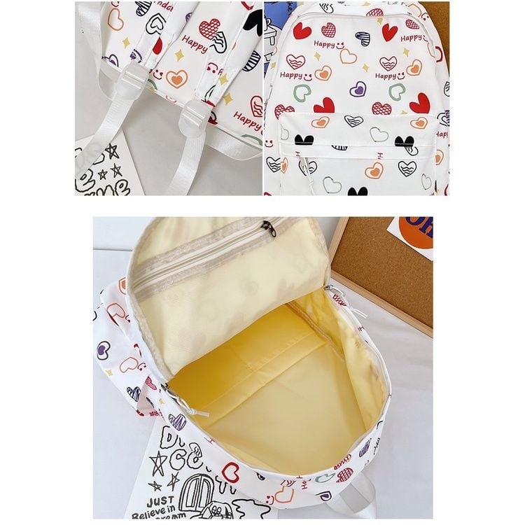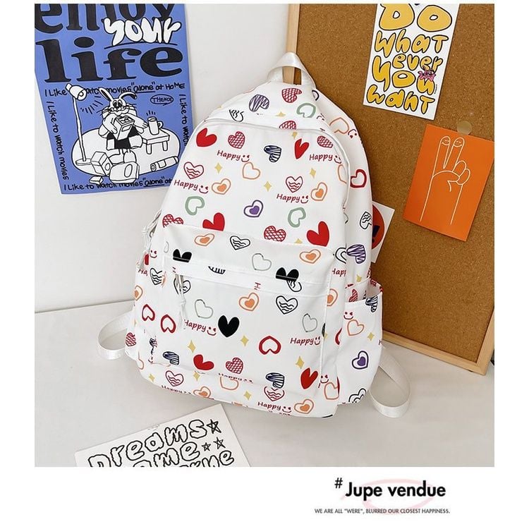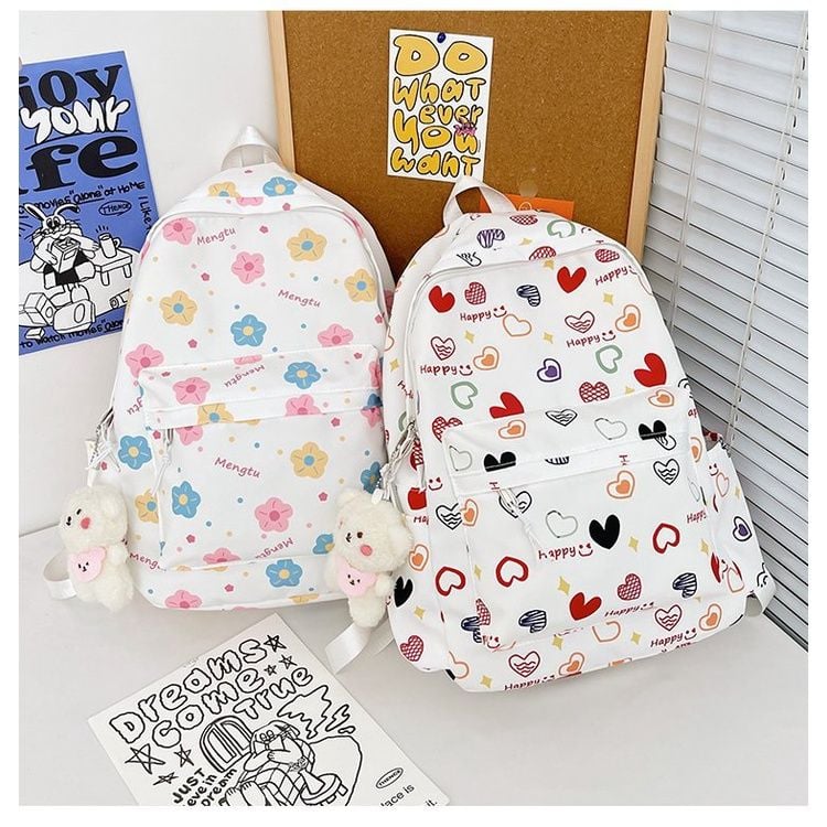 Balo hoạ tiết tim hoa dễ thương, hot trend balo nữ, học sinh sinh viên.