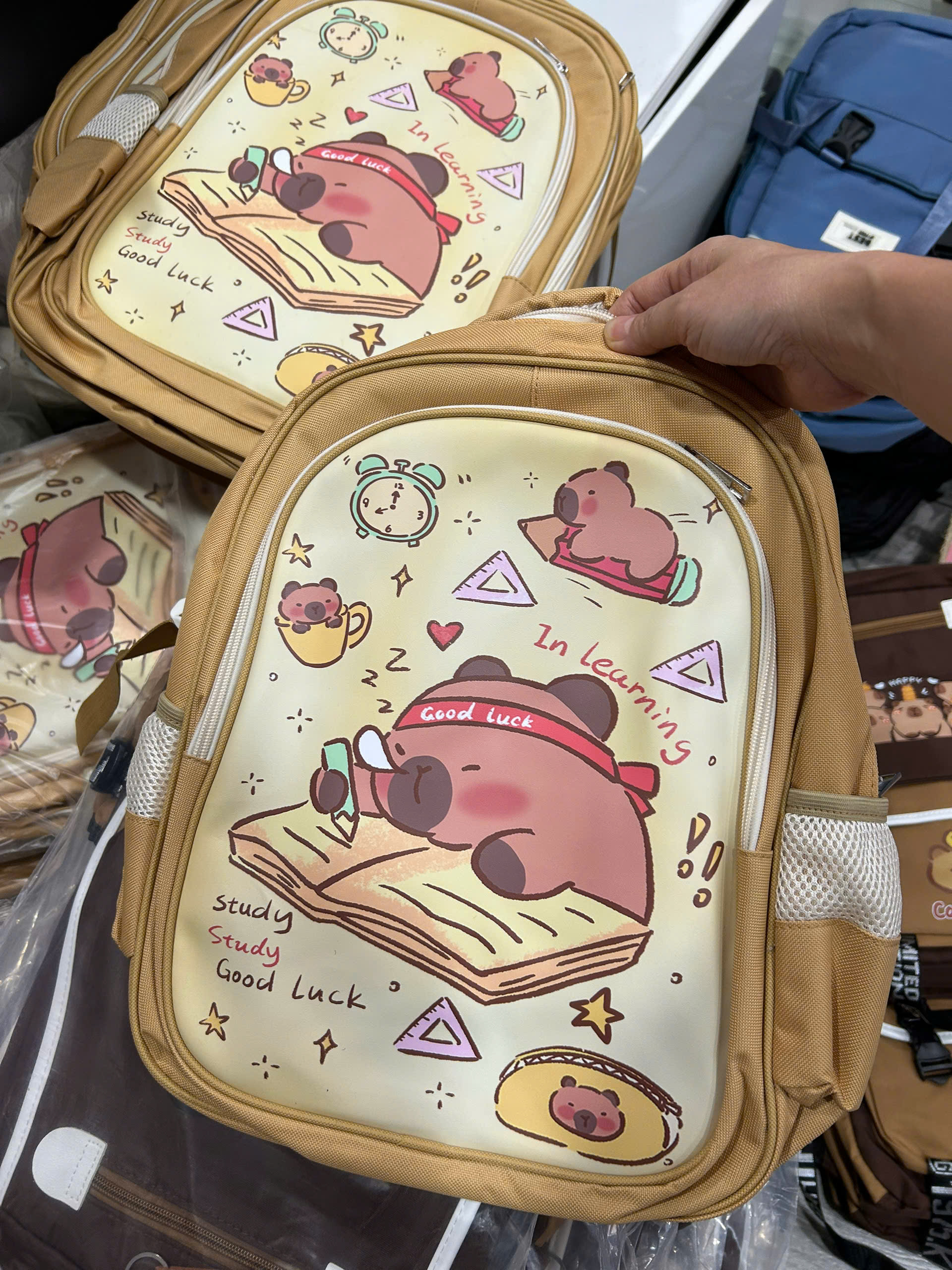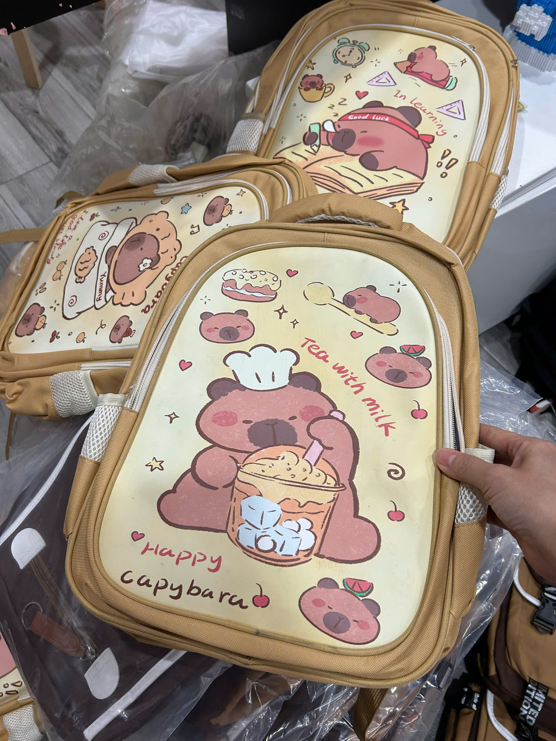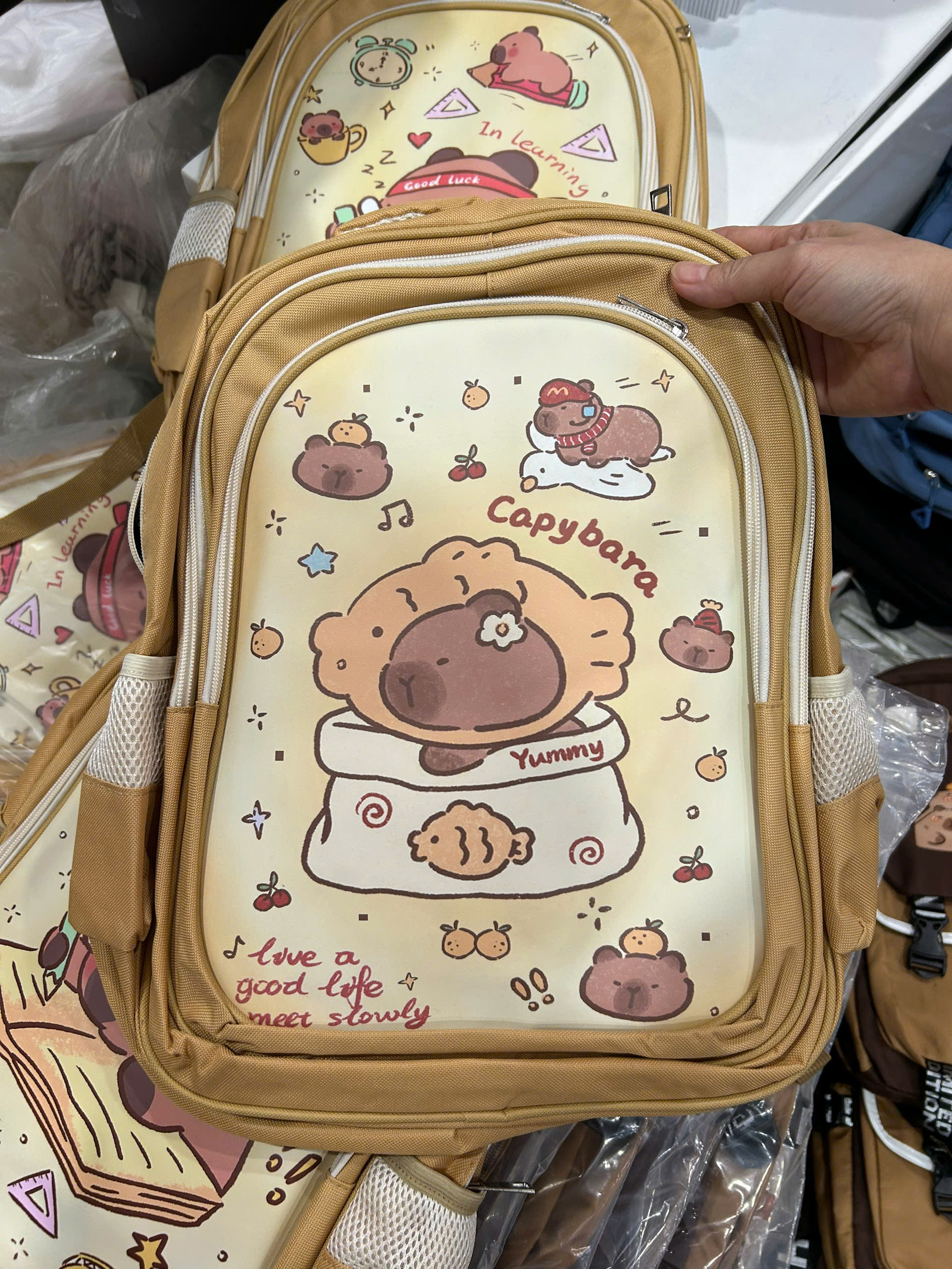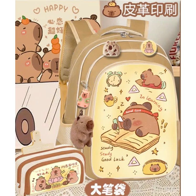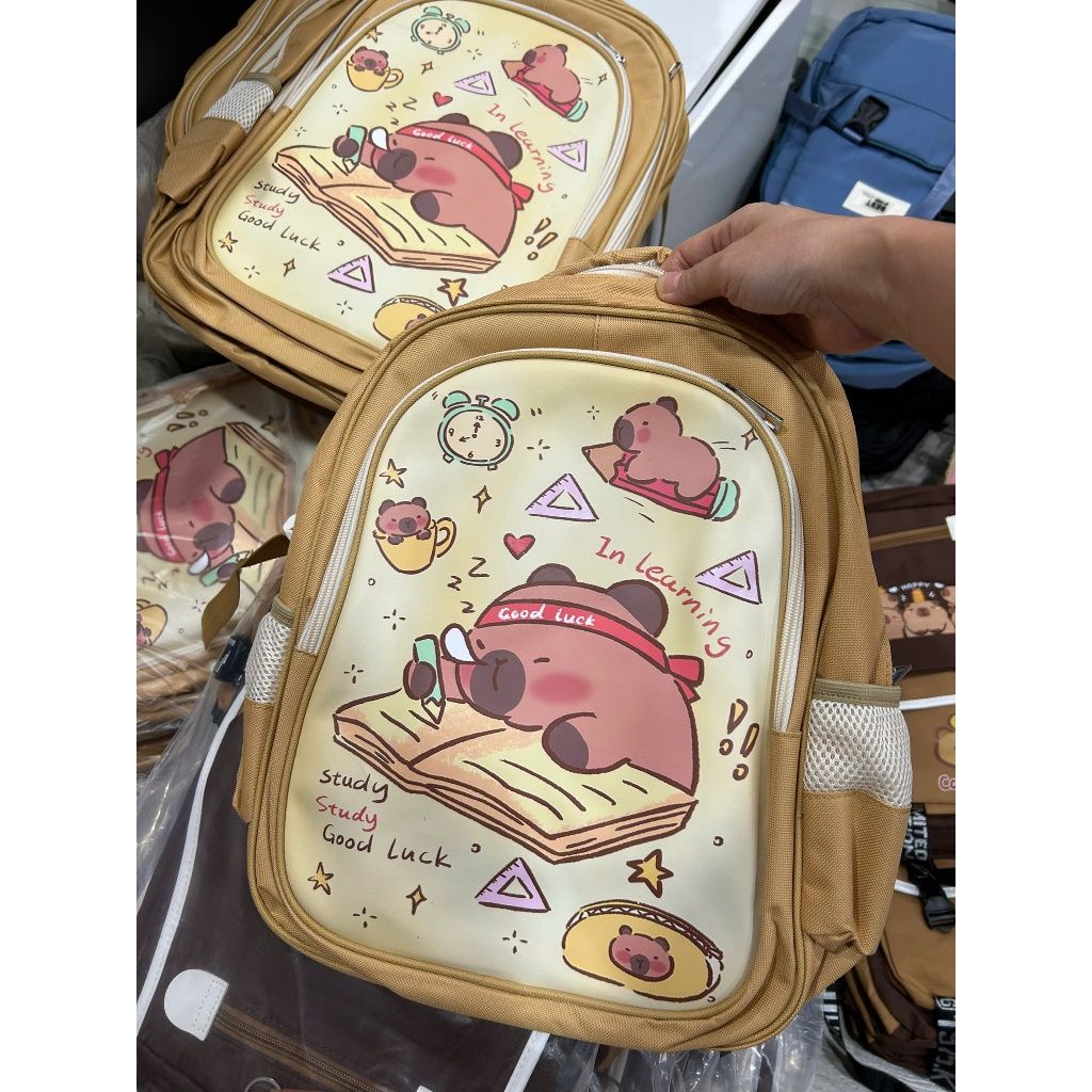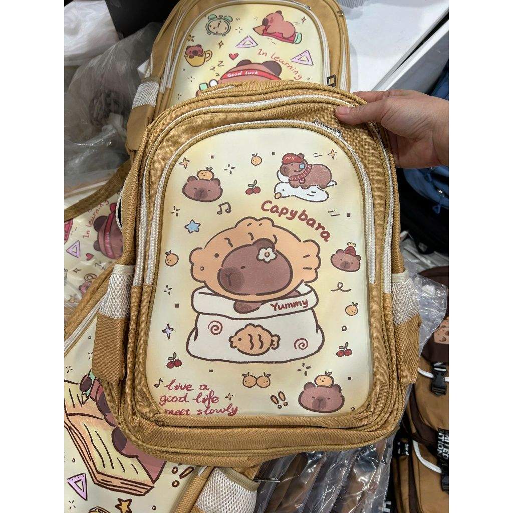 Balo học sinh nam nữ tiểu học cho bé, cặp capybara Xinh Xinh 2 kích thước to và vừa