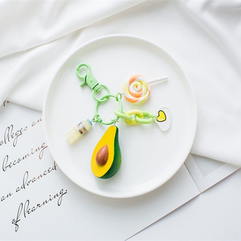 Móc khóa trái cây và bánh dễ thương.